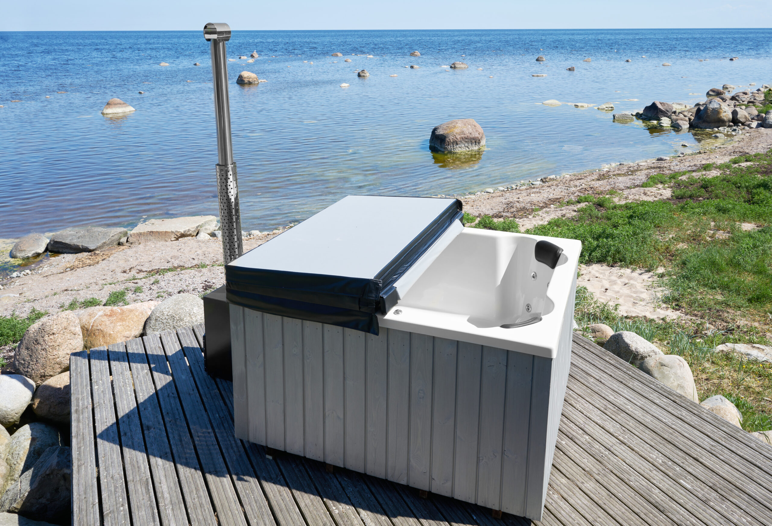 Le bain nordique en coque de fibre de verre existe non seulement en plusieurs modèles mais aussi avec des choix de configurations.